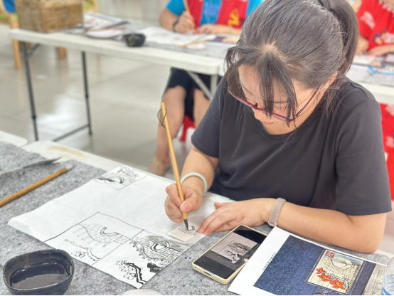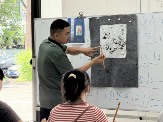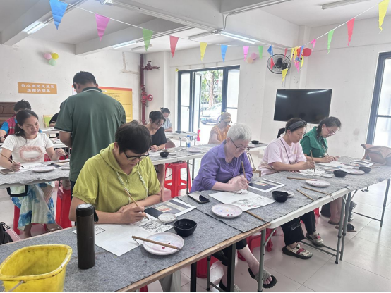 9月25日下午的收官课上,除常规教学外,祈福新邨社区还邀请6位前期表现优异的国画志愿者深度参与国画文创绘制。他们围绕广府文化元素自由发挥,将广府风物化作创意灵感,这批画作后续将制作成系列文创小框画,在社区内进行长期慈善展销,所得收益也将用于支持后续公益活动,形成“学习—创作—回馈”的良性循环。国画志愿者谢女士表示:“很感谢社区和舒象厚画院提供的这个学习平台,丰富了我们的生活。也让我有机会用自己的所学为邻里做些小事,这种参与感很珍贵。”